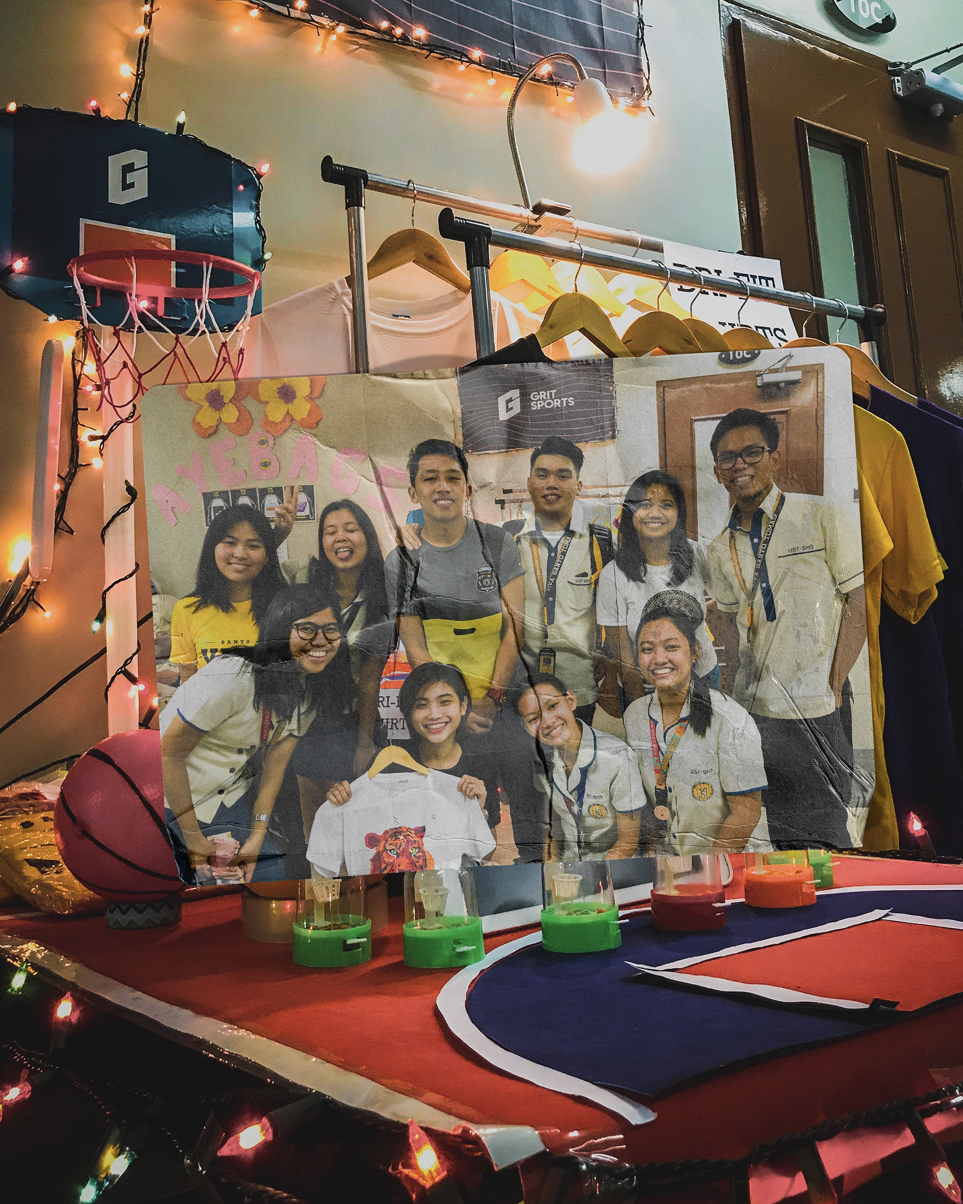 Grit Sports began as a UST SHS Entrepreneurship project, selling graham balls and rice meals to fund a booth. After senior high, two members continued the venture in college, partnering with teams like FEU Track & Field and the Mapua Cardinals Volleyball team.